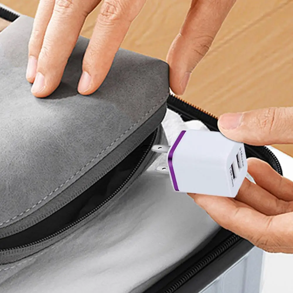 Unser Doppel-USB-Ladegerät verkürzt die Wartezeit und ist mit dem jeweiligen Ladetyp gekennzeichnet. Es ist in verschiedenen Farben erhältlich, leicht zu transportieren und verfügt über Sicherheitsfunktionen wie Kurzschluss- und Überhitzungsschutz.