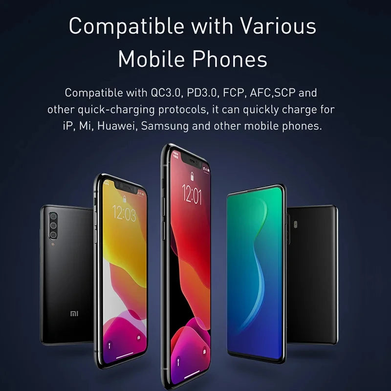 Diese Baseus Powerbank funktioniert mit allen Smartphones, sowohl iPhones als auch Android-Geräten, und mit anderen alltäglichen USB-Geräten.